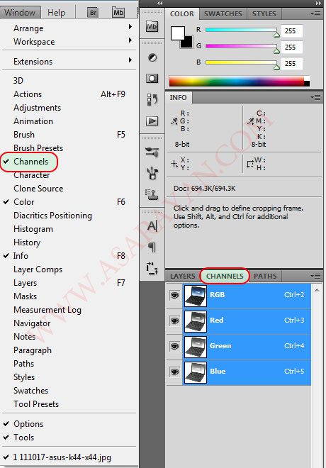 استفاده از پالت کانالها در فتوشاپ